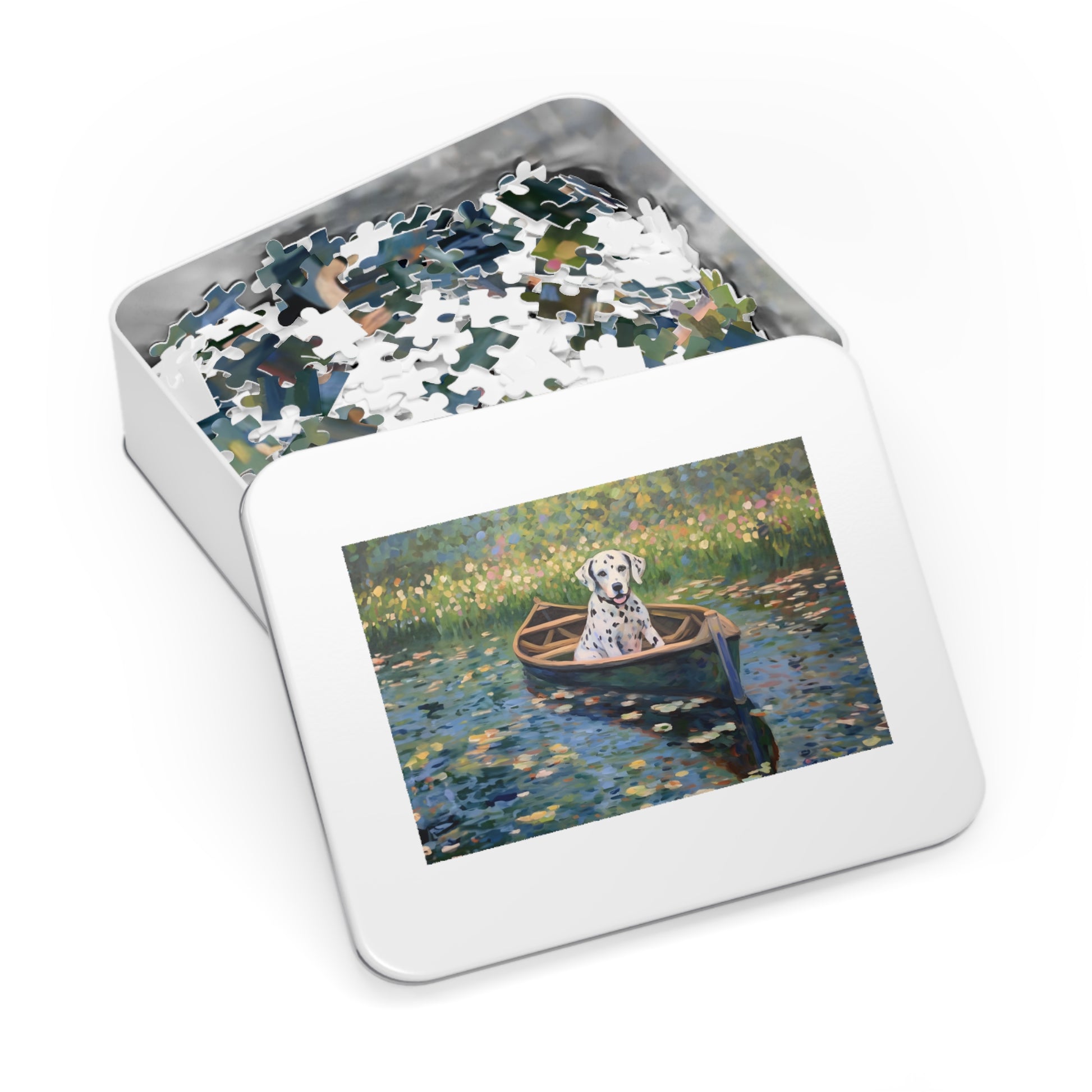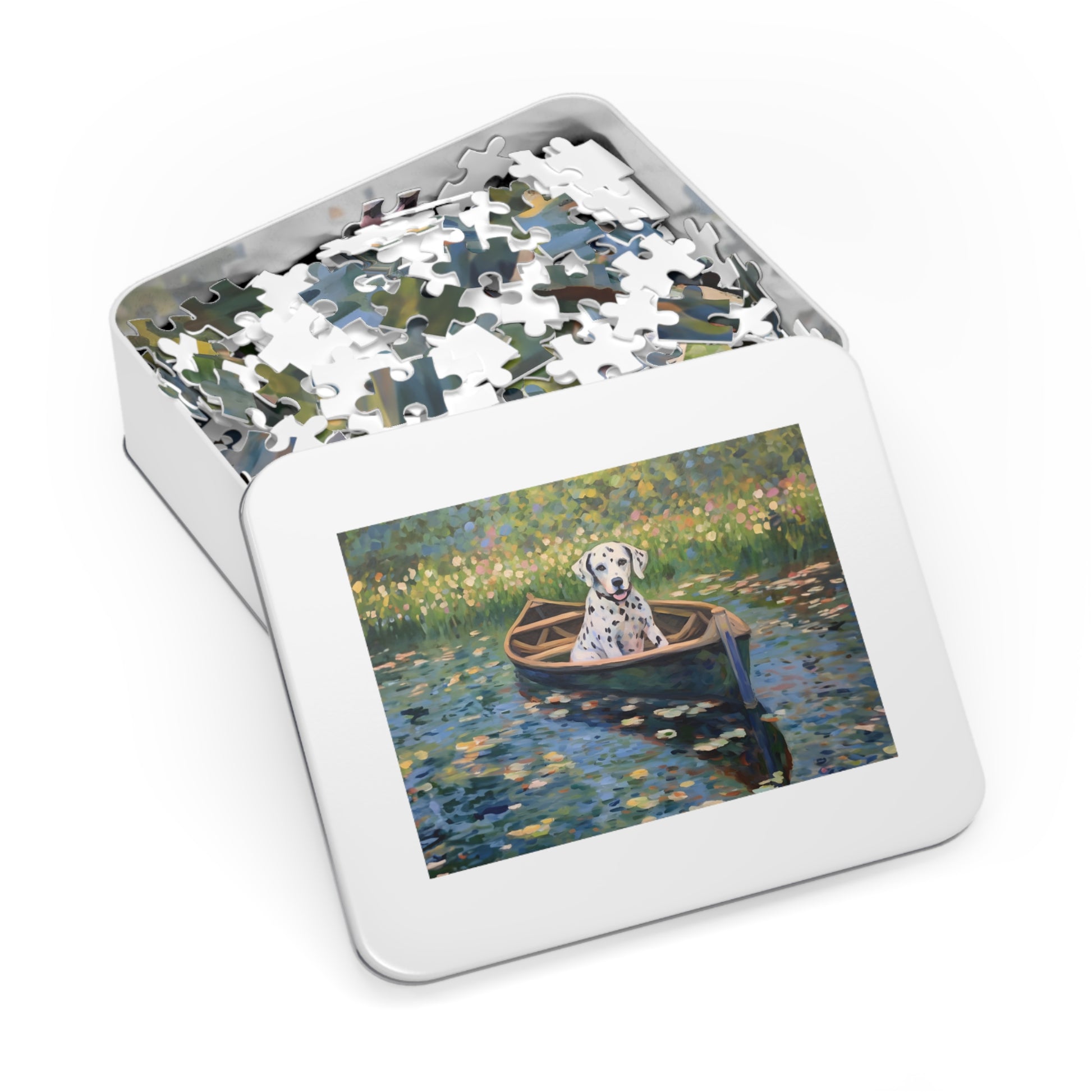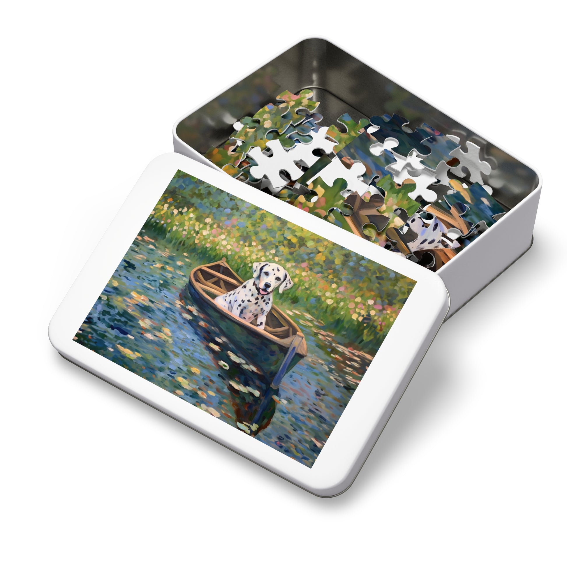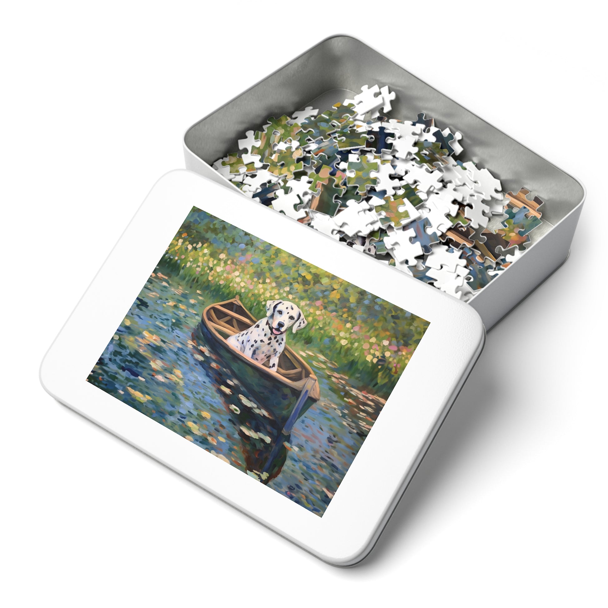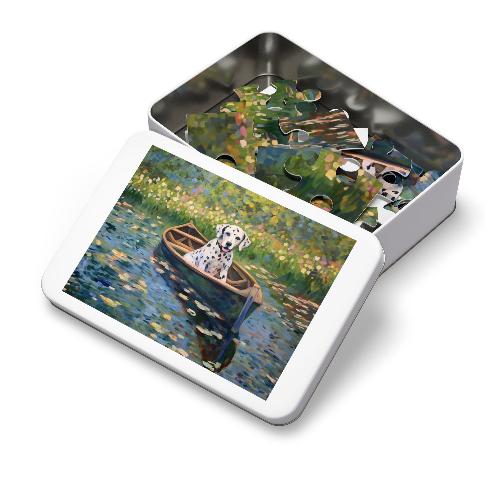 Unleash your puzzling prowess with our Dalmatian Monet Puzzle—a captivating masterpiece that beautifully combines the distinctive charm of the breed with the timeless strokes of Monet's artistry. Crafted with impeccable attention to detail, this puzzle is made from high-quality chipboard pieces with a satin finish, promising an exquisite tactile experience. With 30, 110, 252, 500, and 1000-piece variations, it offers delightful challenges for both new and experienced puzzlers. Delivered in a white metal tin box, featuring the finished image on the cover, it's a stylish and impressive gift. Em"bark" on a delightful puzzling adventure and experience the artistic beauty of our Dalmatian Monet Puzzle.